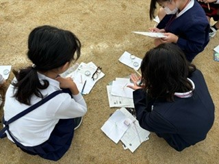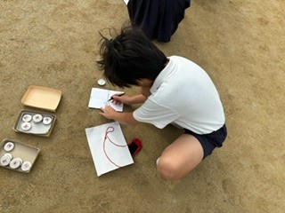 かげの向きと太陽の位置の確認をしました。