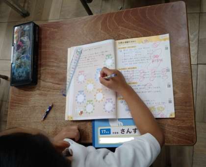 算数「九九の答えでもようづくり」 九九の答えを使って円の中にもようを作っています。