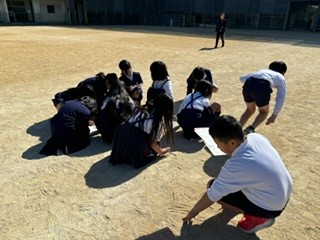 「日なたと日かげの地面」の単元で、日なたと日かげの地面をさわってちがいを比べました。