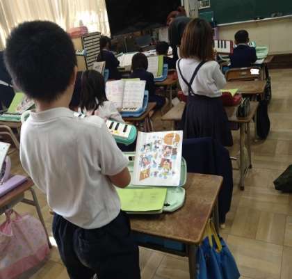 山のポルカの歌と、鍵盤ハーモニカで演奏の練習をしました。