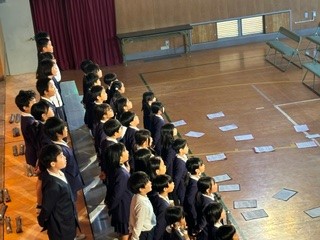 学習発表会の練習では、本番当日と同じようにグループの発表、リコーダー、歌の流れで行いました。