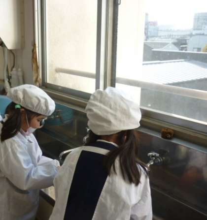手を洗って準備をしています。