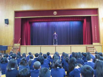 最後に、校歌を歌いました。元気な声が、講堂に響きました。
