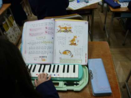 音楽「小ぎつね」 歌詞から小ぎつねの気持ちを考えたり、鍵盤ハーモニカで練習したりしました。