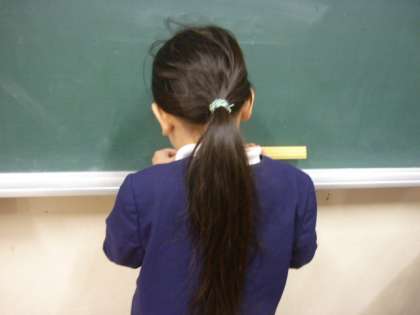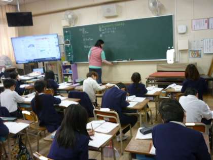 30センチのものさしを使って、教室にあるものを長さをはかっています。