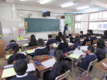 5年生の学習の様子をご紹介します。1組は学活で、3学期の係や当番を決めました。