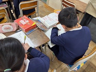 国語辞典を使って意味調べをしました。はやく調べられる人が増えてきました。