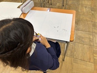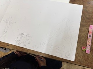 「手袋を買いに」のお話を聞いて、イメージして絵を描きました。