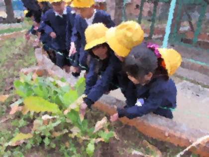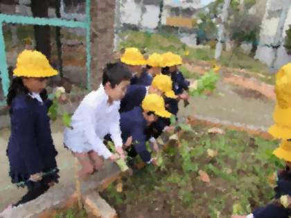 2年生が学習園で育てた天王寺かぶらを、本日、収穫しました。大きなかぶがたくさんできていました。2年生の子どもたちは、「大きなかぶ」のお話を思い出しながら、引っ張っているようでした。