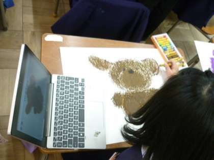 国語「たからものをしょうかいしよう」で紹介するたからものを画用紙に描きました。