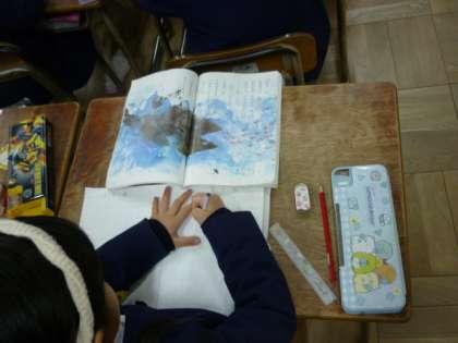 ひとりぼっちになったスイミーのようすがわかるところを読みとりました。