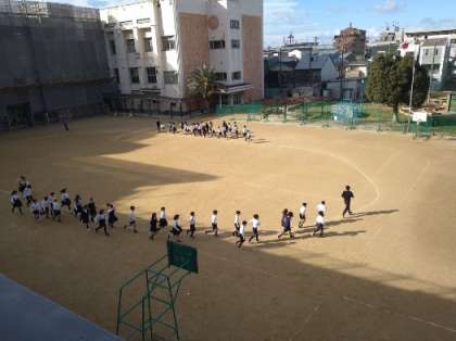 1時間目の休み時間の運動場を走りました。 最後までがんばりました。