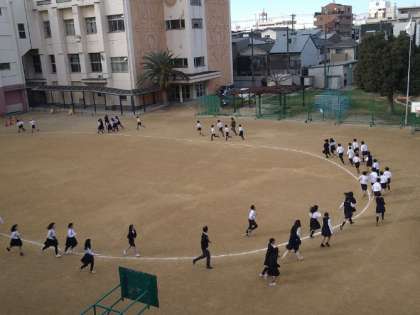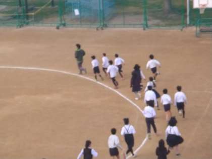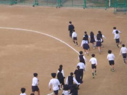 1時間目の休み時間に運動場を走りました。