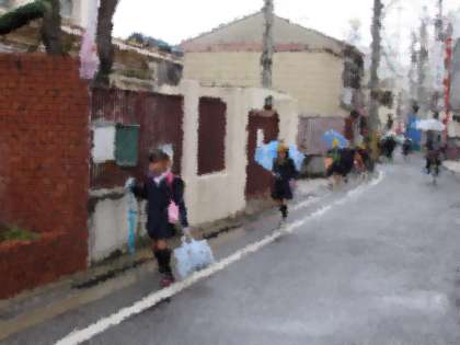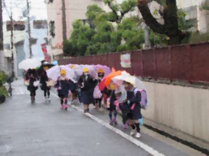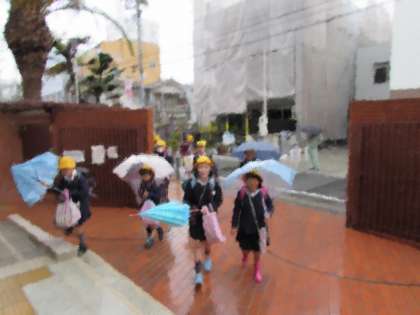 久々の雨となりました。気温も低く、冷たい雨です。子どもたちが傘をさしながら、登校してきました。