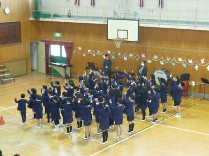 2年生が「にじ」を歌いました。 がんばって練習したふりつけも完璧でした。