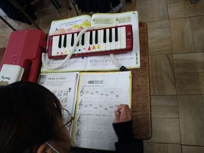 音符をよみとったり、春がきたを鍵盤ハーモニカで練習したりしました。