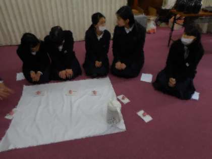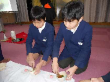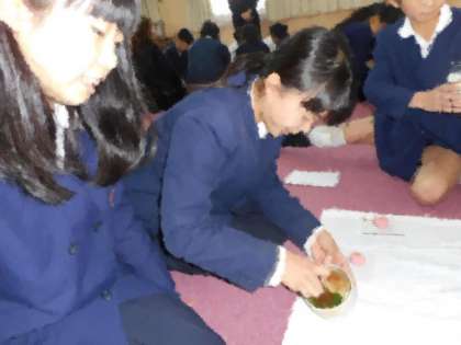 本日の5・6時間目、生涯学習ルームで盆点前を学習している皆さんを講師にお招きして、6年生のお茶体験を行いました。抹茶やお菓子をいただきました。
