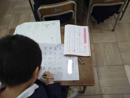 漢字の練習をしました。 とめ、はね、はらいに気をつけて書くことができました。
