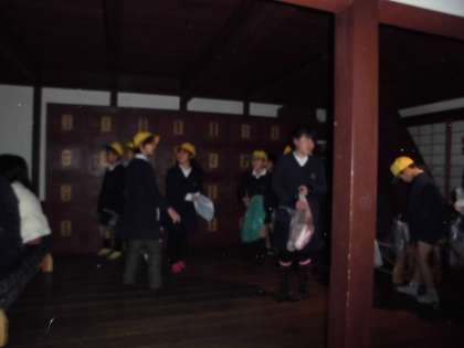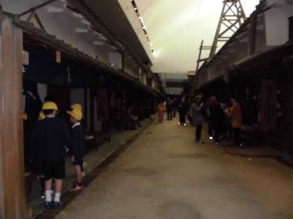 本日、3年生は社会見学で、くらしの今昔館に行きました。今昔館では、江戸時代の大阪の街並みに入り込み、また、昔のくらしや生活用具などについても見学をしました。