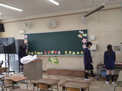 来週は令和7年度の入学式です。新6年生が登校し、入学式に向けての準備を行いました。