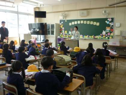 入学式を終え、教室に入って担任の先生とのごあいさつです。1年生のみなさん、明日から元気に登校してくださいね。