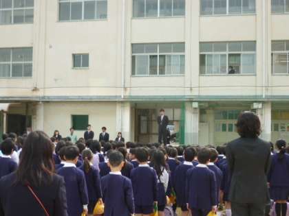 最後に、校歌を歌いました。一年のはじめ、皆の澄んだ声が運動場に響き渡りました。