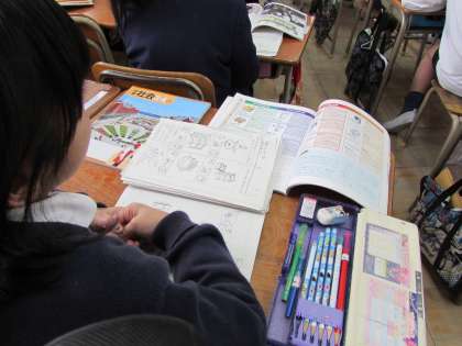 3年生の学習の様子をご紹介します。今日は社会科で、むかしのくらしの様子について学習しました。昨日、社会見学で行った、くらしの今昔館の展示物も思い起こしていきました。