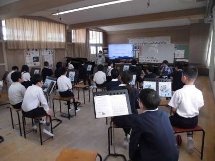 音楽の学習の様子です。みんな音楽が好きで楽しみながら授業を受けています。