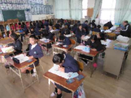 1年生の学習の様子をご紹介します。きょうの5時間目、理科の「しんだん」を行いました。皆、集中して取り組んでいます。