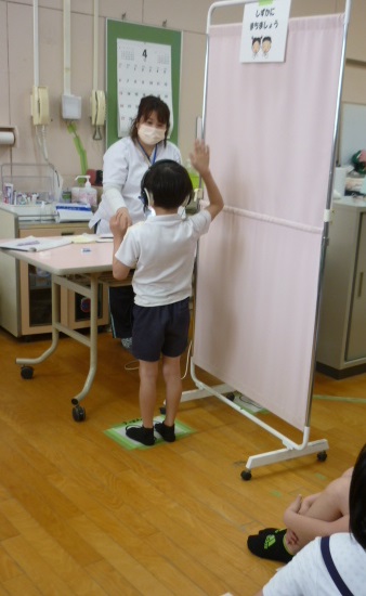 聴力検査をしました。全員が終わるまで静かに待つことができました。
