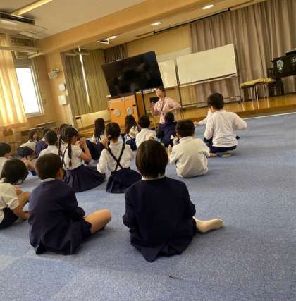 音楽鑑賞の学習です。音楽を体の動きで表現しています。