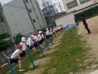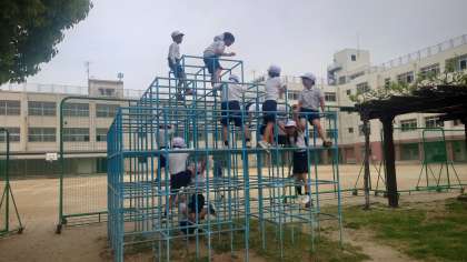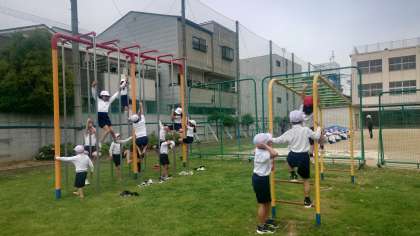 のぼり棒・雲梯・ジャングルジム・鉄棒を使って運動しました。