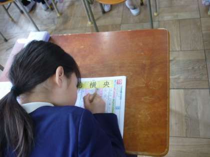 漢字の学習をしました。 「央」と「横」を漢字スキルに書きました。