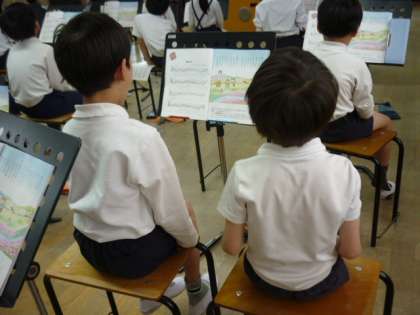 「世界中のこどもたちが」と「春の小川」の歌の練習をしました。