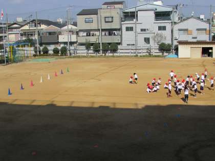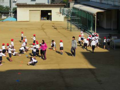 1年生の学習の様子です。寒さに負けず、元気に運動場で体育をしています。