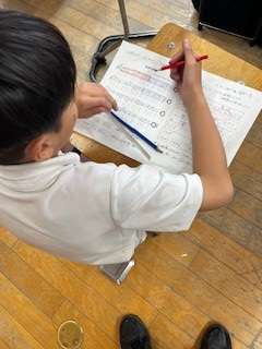 手拍子でリズムをとりながら同じ小節をさがしたり、落ち着く小節を探したりしました。