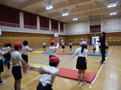 立ち幅跳びの練習をしました。