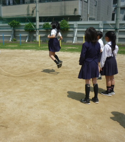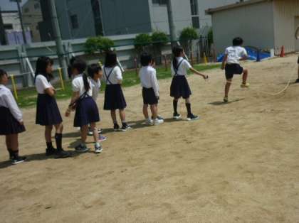 運動場で大なわをしました。