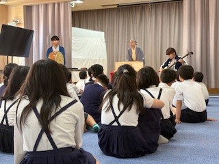 落語の学習で落語家さんに来ていただき、落語を見せていただきました。