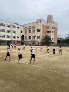 5月16日(金)ソフトボール投げの練習をしています。少しずつ遠くまで投げられるように取り組んでいます。当日が楽しみです。