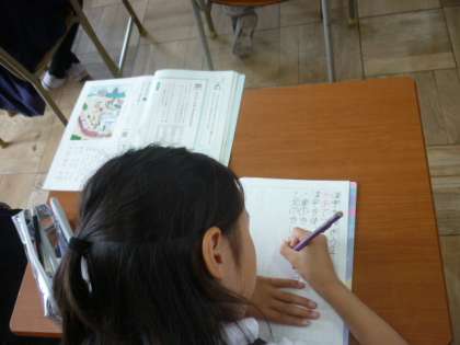 教科書の挿絵を見て、文作りをしました。