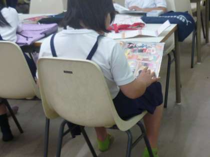 図書の時間です。 すきな本を選んで集中して読んでいます。
