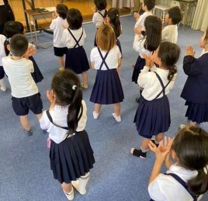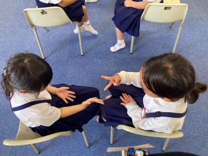 「ひらいたひらいた」「おちゃらか」など、みんなで楽しく手遊びをしました。