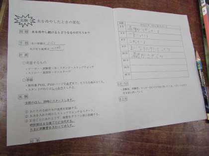 4年生の学習の様子をご紹介します。1組は理科の学習で、「水を冷やしたときの変化」についてまとめています。