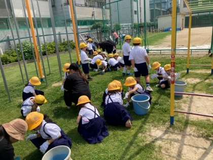 芝生に生えている雑草抜きをしました。