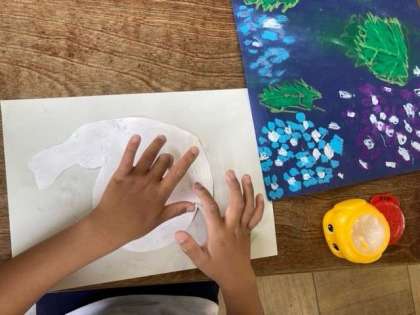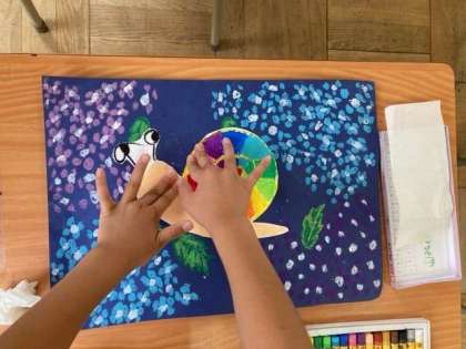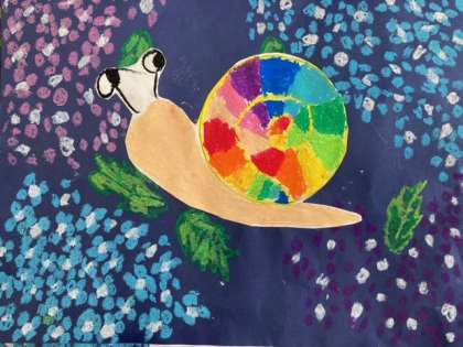 完成したあじさいに、かたつむりを貼りました。とってもかわいい作品が仕上がりました。