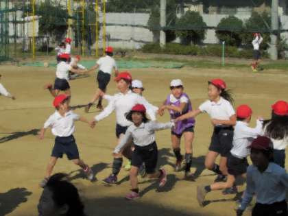 本日の2時間目、運動場で、2年生と4年生の交流会を行いました。