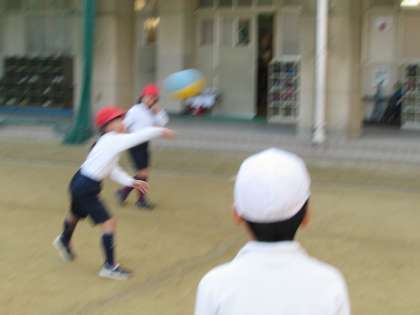 その後、4つのコートに分かれて、ドッジボールをしました。「勝ち負けより、2年生も楽しめるようなドッジボールをしよう」と、4年生の先生からは話がありましたが、試合が進むうちにヒートアップしてきて、4年生も力が入っていきました。