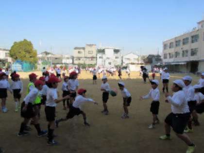 初めに、増えおにをしました。おにごっこで運動場を駆け、体がぽかぽかと温まりました。