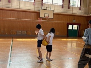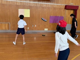 的にドッヂビーを上手く当てられる投げ方を教えあい、「当てれた」と喜びを共有していました。